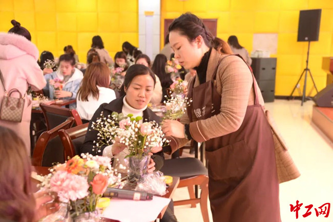中工网讯 近日,在“三·八”国际劳动妇女节到来之际,贵州省遵义市习水县总工会开展以“展时代风采·做魅力女性”为主题的美妆、盘头、插花等系列活动,近100名女职工参加。
