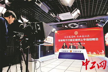 3月14日,“工会送岗位 乐业在江淮”安徽省电子企业直播招聘会在淮北市举行。直播通过“岗位描述+直播带岗”的形式,从工作环境、薪酬福利、发展路径等方面将招聘职位推荐给求职者。招聘会邀请了40多家优秀电子企业,提供了3000多个就业岗位。工人日报-中工网通讯员 张锋 摄