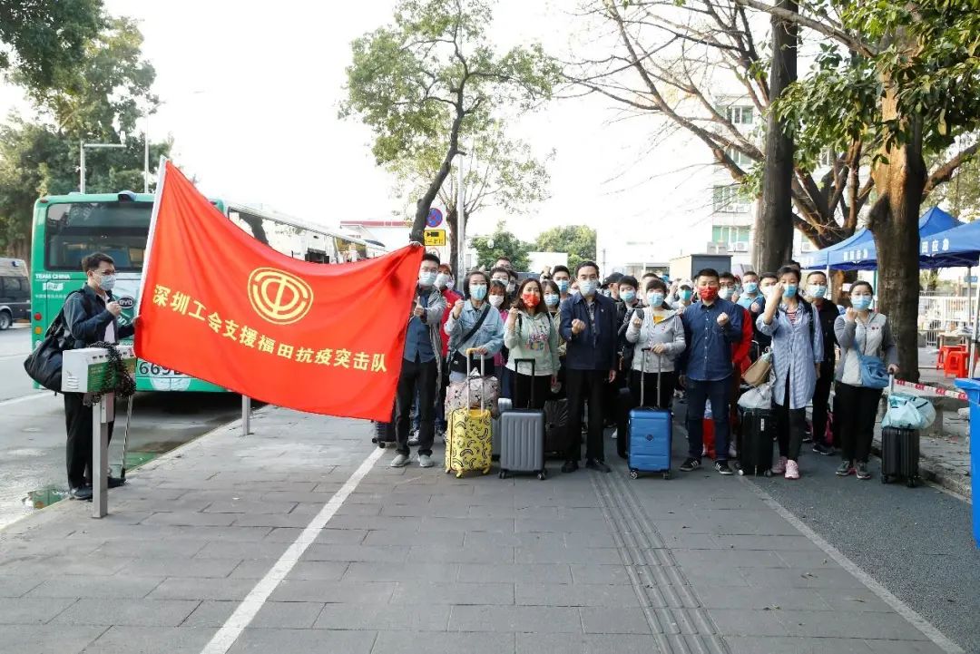 据深圳市总工会微信公众号消息,3月10日,广东省深圳市总工会紧急号召集结了400余名来自全市各基层工会的工会干部、职工组成深圳工会支援福田抗疫突击队,投入福田封控区、管控区工作。他们中有工会干部、劳动模范、老师、厨师、服务员、工程师……统一集结为深圳工会抗疫突击队,并分成5个分队前往沙头街道、南园街道、香蜜湖街道、福田街道参加抗疫工作。为隔离在家的居民织起疫情防控安全网、温暖服务的爱心网,为打赢疫情攻坚战贡献工会力量。