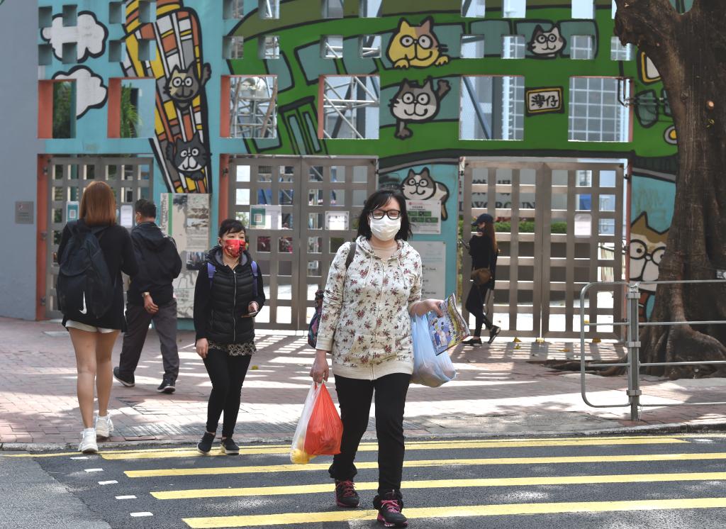 3月5日,在香港湾仔,市民佩戴口罩出行。新华社记者 卢炳辉 摄 活动发起不到1小时,内地及香港15家社团组织和11家企业积极响应,捐赠物资价值超过1.5亿元人民币。