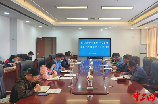 中工网讯 近日,内蒙古阿拉善盟工会召开党组理论中心组扩大会议,学习传达全国“两会”精神。