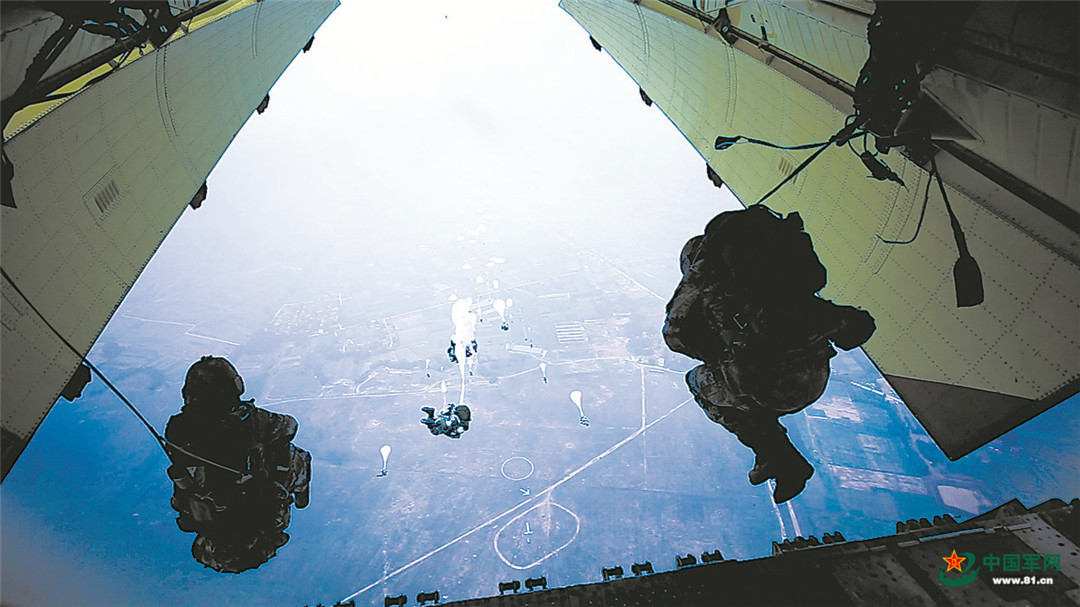 冲锋,一次比一次有力。身背武器装备和伞具,登机时个个斗志昂扬;从千米高空一跃而下,伞开蓝天时人人意气风发……和空降兵官兵一起训练的时间越久,对他们高昂的士气印象越深——那是护卫祖国和人民的坚定信念,那是扛起使命责任的铁肩担当。
