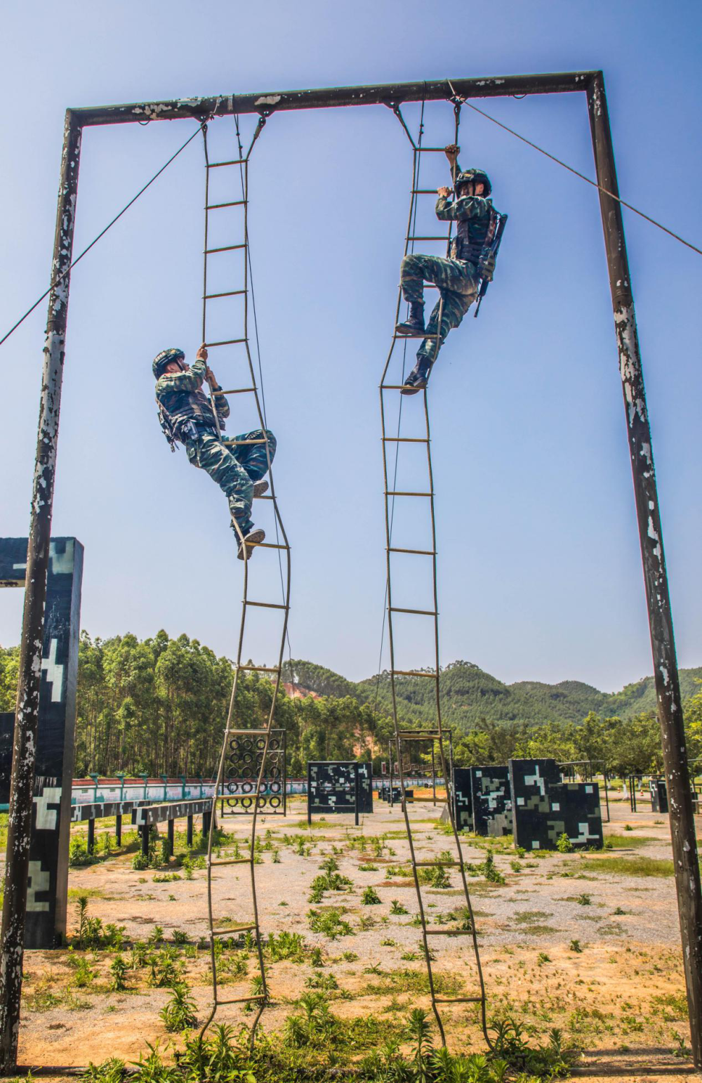 特战队员快速通过云梯