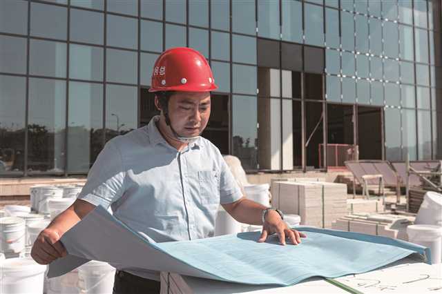 张量在仔细审查施工图纸 开拓进取 以身作则勇担当