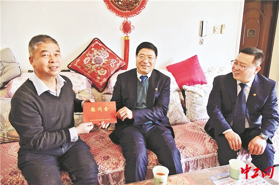 长庆油田公司第三采油厂厂长、党委副书记马世清(右二),党委副书记、工会主席郝朋朋(右一)慰问劳模先进。 涓涓油流汇集成波澜壮阔的激涌,昂扬斗志凝铸出石油脊梁的伟岸。开发建设半个世纪的采油大厂应对着老油田稳产难度大、优质后备储量不足等种种困难,如何团结带领广大职工把握机遇,迎接挑战,为油田高质量发展建功立业,成为新时代采油三厂工会的重要使命。