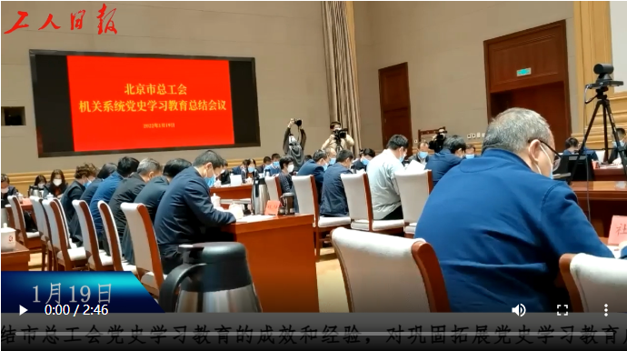 | 会上,北京市总工会党组副书记、副主席、党史学习教育领导小组副组长潘建新传达习近平总书记重要指示精神和中央、市委党史学习教育总结会议精神。劳动午报社党委、市总工会法律服务中心党支部、12351职工服务热线分别作经验交流。 |