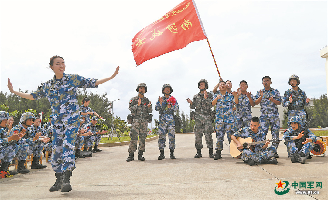 近日,南部战区海军文艺服务小分队从历代守礁官兵的英雄事迹中汲取鲜活的创作素材,创排出一批精彩文艺节目,送到永暑礁、华阳礁等南沙礁盘,为守礁官兵送去温暖和激励。