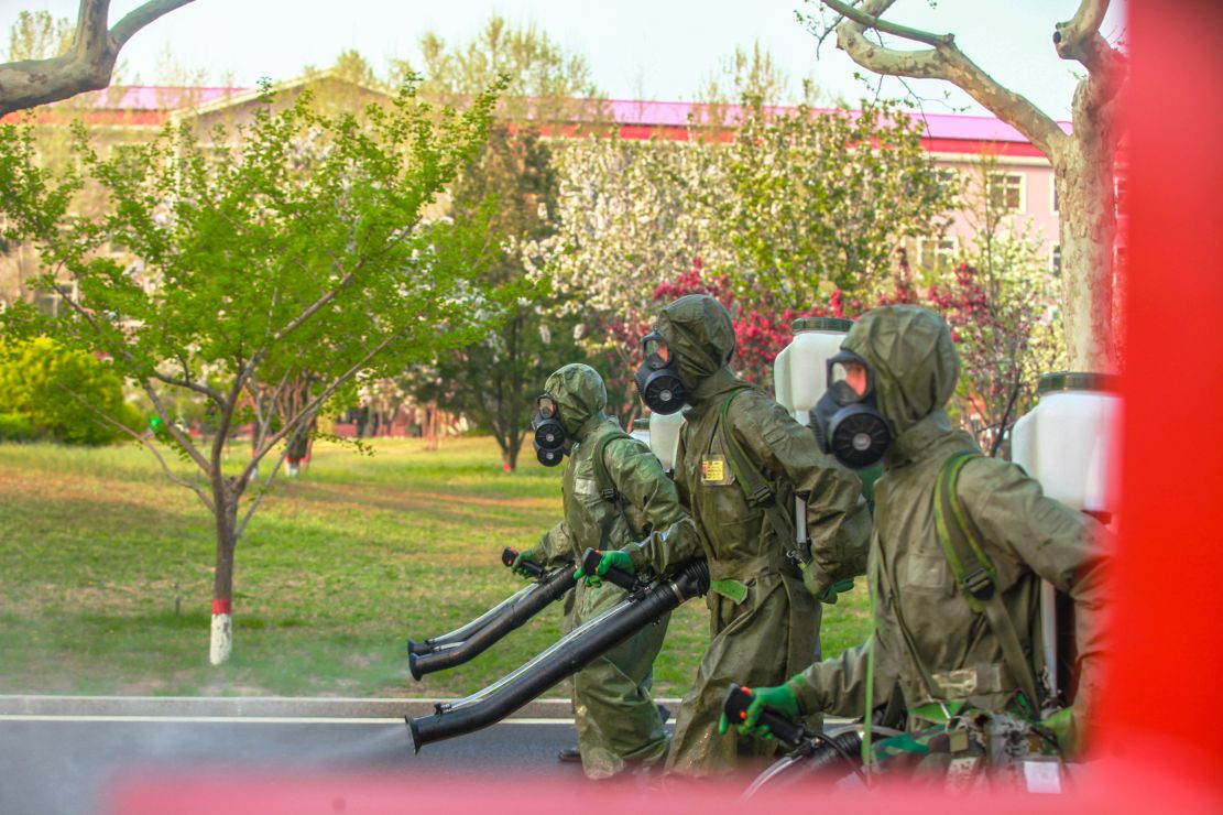 央视网消息: “前方道路化学沾染,处置!”近日,武警第一机动总队某支队开展洗消训练,锻炼官兵处置突发紧急情况的能力。