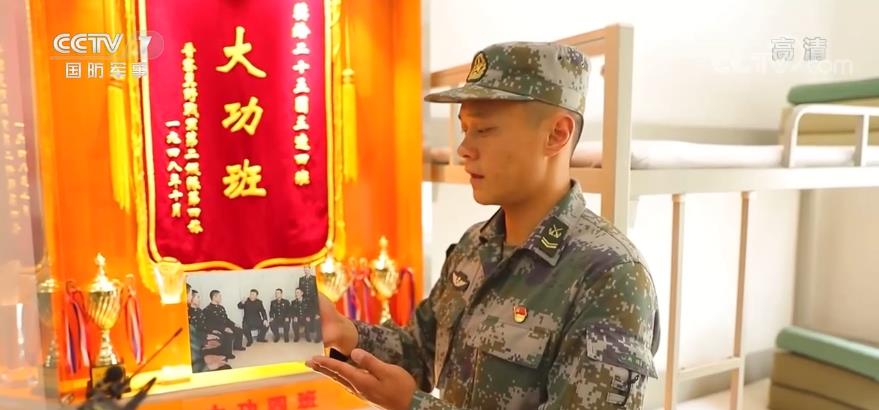 第83集团军某旅“大功三连”班长 赵闯:这张照片是主席当时来到我们排宿舍,和我们大家一起合影的一张照片。我们排无论走到哪里都会带着它。我认为这不仅是一种荣誉,更是对我们能够更好投入练兵备战的一种激励。