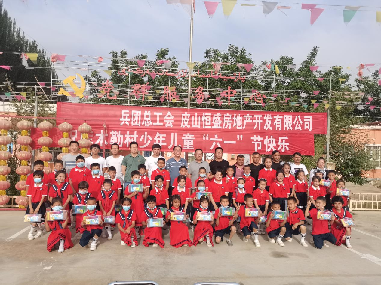 5月31日,新疆生产建设兵团总工会访惠聚工作队携手皮山恒盛房地产开发有限公司在库木勒村村委会开展“六一”慰问活动,向库木勒村小学的少年儿童致以节日祝福,为孩子们送上了学习文具等礼品。