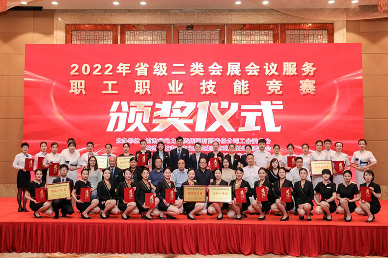 2022年甘肃省级二类会展会议服务职工职业技能竞赛火热开赛,7支代表队40名选手参加比赛,通过会展会议服务理论考试和实操展示,最终6个团队获得团体奖,3名参赛选手获得决赛个人奖,7名参赛选手获得优秀奖。