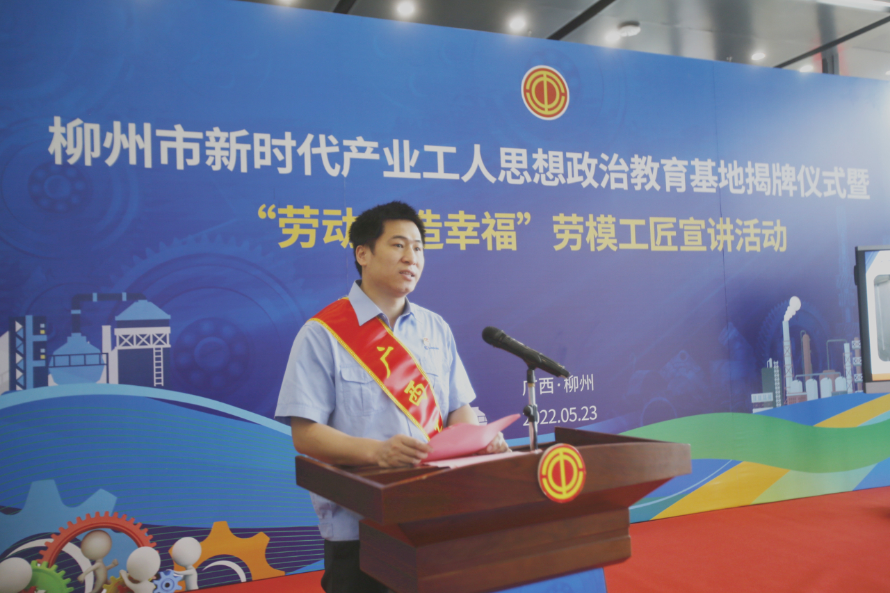 1989年出生的全国机械工业劳动模范、广西工匠庞淇文,是柳州市总工会劳模工匠宣讲团中最年轻的一位。作为柳工的高级技能专家和劳模创新工作室带头人,他对“劳动创造幸福”的理解是:在这个伟大的时代,产业工人的政治地位、经济地位、社会地位正在稳步提高。庞淇文入“团”已有三年,先后进到全市各职业院校、车间班组、工地一线、园区社区,开展了20多场关于劳动圆梦、奋斗成长的宣讲,引发了广大年轻人的共鸣。今年5月,在柳州市2022“五一特别节目”现场,他和另外两位工匠深情讲述柳工送他们到北京上大学的故事,更是让观众强烈感受到国家、社会、企业对劳动的尊崇与珍惜。