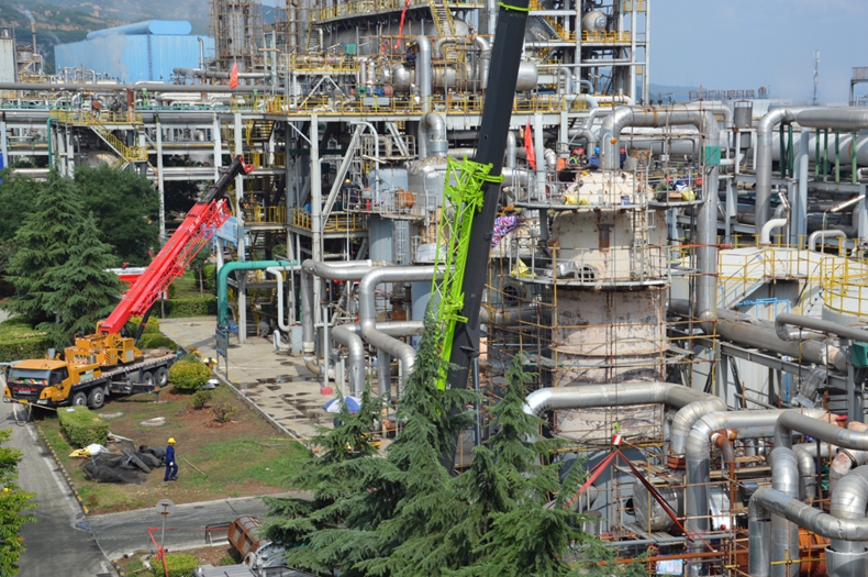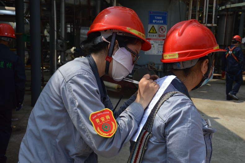 一组组数据的背后,是一个个迸发满腔热情的“电焊大咖”“检修姐们花”“老把式”……他们穿梭于厂房里、精馏塔、冷却塔,焊花四溅、铁锤叮当,到处是忙碌清理拆卸、检测、安装的工人;他们或是登高作业,或是在狭窄有限空间匍匐作业,个个汗渍、油渍斑斑。他们彰显着能干事、肯干事、会干事的陕化风貌。