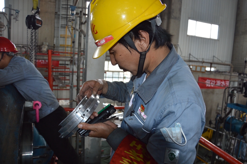 二氧化碳压缩机组是陕化公司三大核心关键设备之一,属于进口设备,检修程序复杂,备件精密,各种附属管线多达百余条,此类大机组检修,在历史规模上尚属首次。高温天气下,有限时间内,高强度工作量对每位参检人员都是一个严峻的考验。