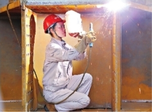 2008年,王中美到武汉参加天兴洲长江大桥的建设工作。爬上高高的脚手架,脚下是滔滔江水,还得仰头焊接作业,她总会习惯性地看看安全绳牢不牢固。“说不害怕是假的,我提醒自己不看脚下、安心焊接。”