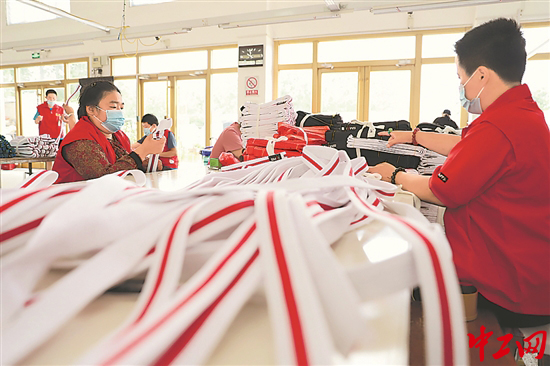 7月11日,山东省青岛西海岸新区康源残疾人辅助性就业中心内,残疾人职工在工作台上忙碌。 西海岸新区进一步推进残疾人辅助性就业,通过对残疾人进行培训,让残疾人自食其力,既提高了残疾人的自信心,又减轻了其家庭负担。工人日报-中工网通讯员 王培珂 摄