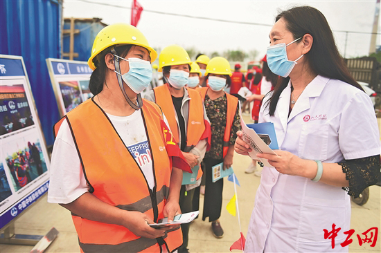 7月11日,河北沧州市人民医院疼痛科、呼吸科、耳鼻喉科等多个科室的医生把诊室搬到工程建设工地——沧州园博园项目部,进行义诊,并对项目承建单位提出应对高温的意见建议,谨防工人中暑。