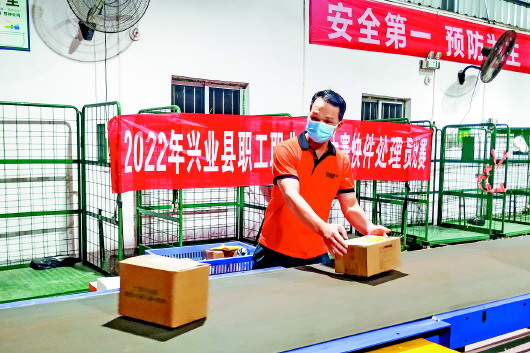 中工网讯 据广西工人报消息,为推动技能人才队伍建设,促进技能人才成长,7月5日,广西玉林市兴业县总工会联合兴业县人社局、中国邮政集团责任有限公司广西兴业县分公司举办2022年兴业县职工职业技能大赛快件处理员比赛。