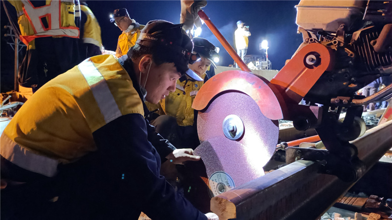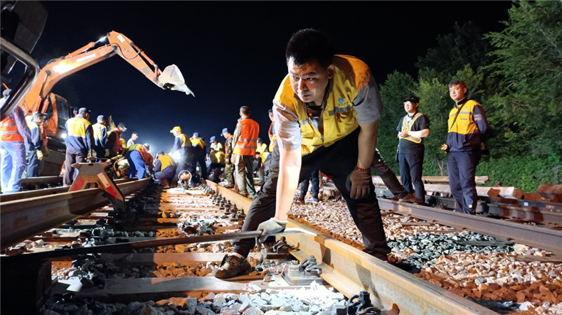 随后,回填石砟,起道、拨道,线路捣固、钢轨焊联……在严密的施工方案组织下,施工有条不紊地施行着。