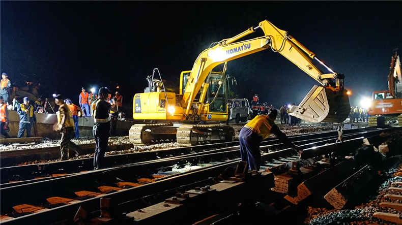 4时30分,经过240分钟的紧张奋战,道岔大修“手术”施工顺利完成。 |