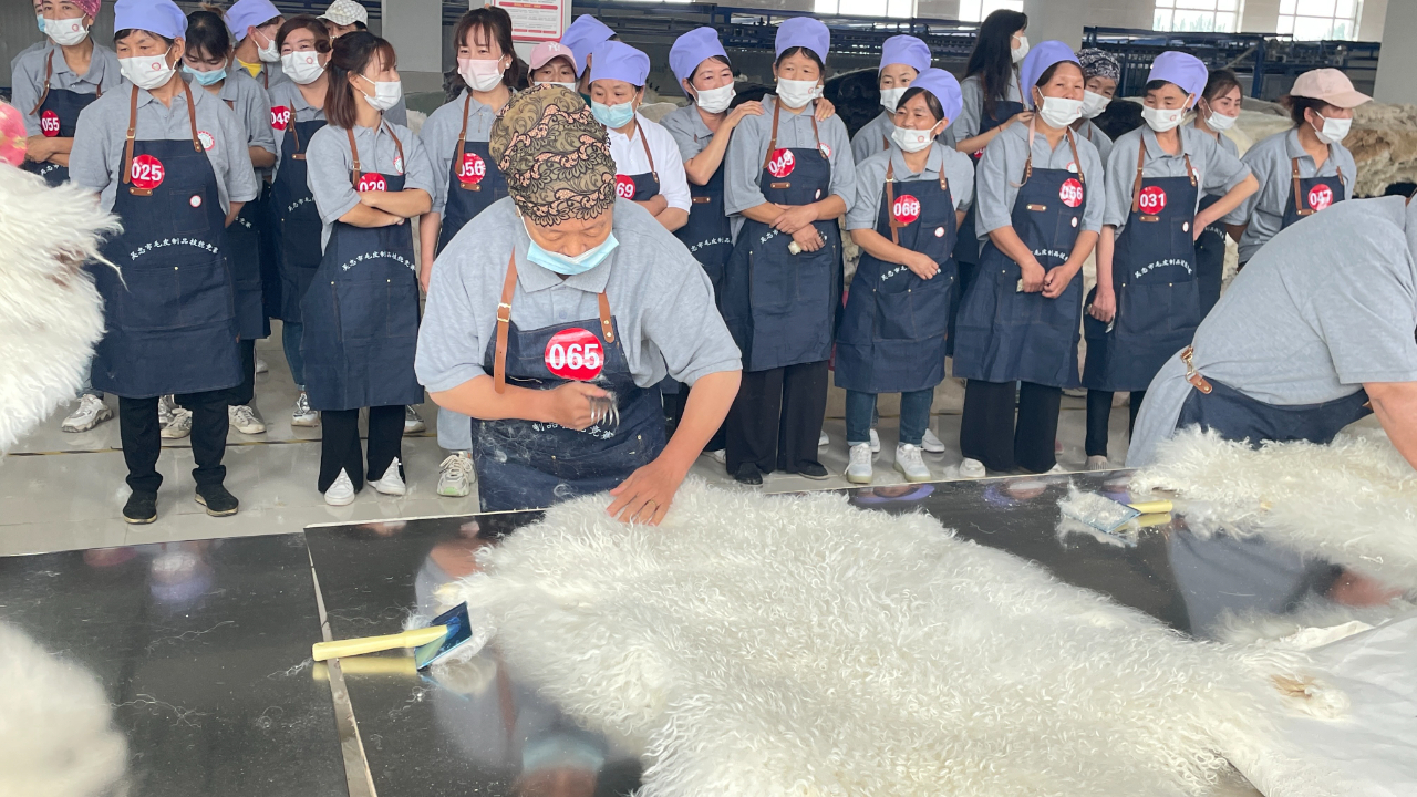 8月23日,由宁夏青铜峡市总工会和宁夏毛皮皮革协会联合举办的2022年青铜峡市滩羊皮制品职工职业技能竞赛在青铜峡市祥云皮草有限责任公司举行。来自辖区滩羊制品产业7个企业的76名职工参加比赛。