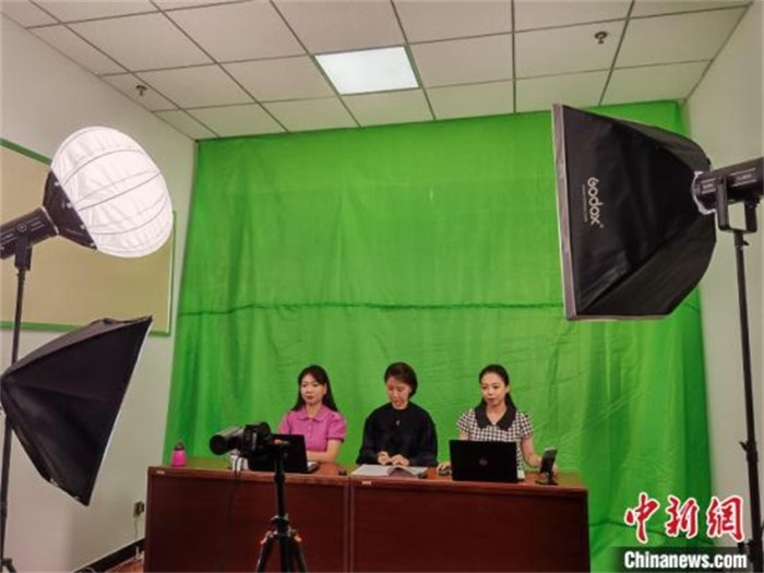 9月28日,甘肃省人力资源市场巾帼就业分市场启动仪式在兰州举行。图为共享直播间。徐雪 摄