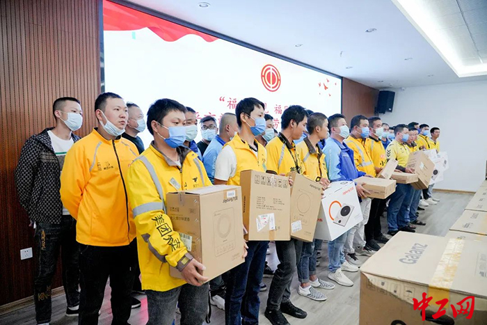 为新就业形态劳动者送上“微心愿”礼包。 卫金平 摄