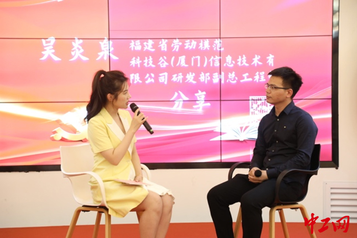 奋进新征程的道路上,离不开广大职工群众勇担使命、敢为人先。活动现场,福建省劳模、科技谷(厦门)信息技术有限公司研发部副总工程师吴炎泉与福建省五一劳动奖章获得者、禾山街道综合服务中心工作人员陈春红结合本职工作,分享奋斗故事,畅谈学习党的二十大精神的心得体会。