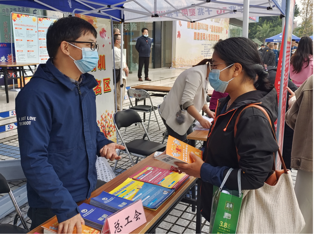 乐山市总工会网站消息,10月27日,四川省峨眉山市总工会联合市人社局、市退役军人事务局和市就业局在峨眉山市电信大楼广场举办“就”在金秋“职”面未来2022年金秋招聘月活动。