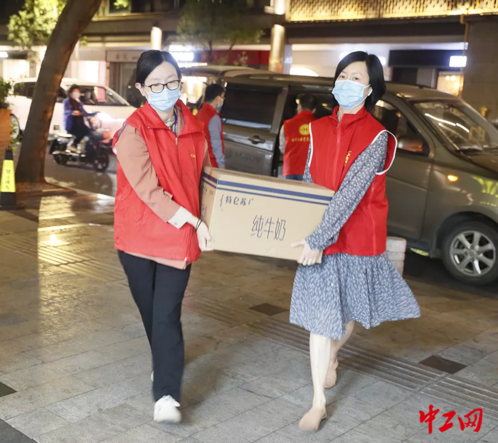 福州市总工会党员志愿者为一线抗疫工作人员送去物资。 鄢燕煌 摄