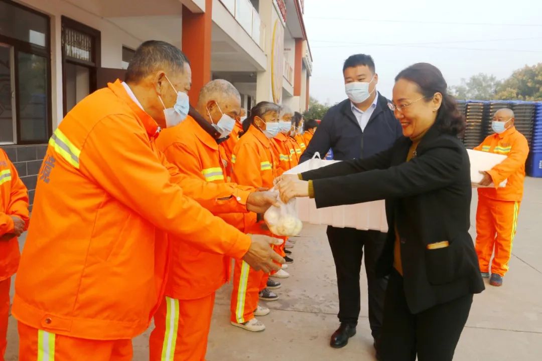 颍泉区总工会微信公众号消息,11月2日,阜阳市颍泉区总工会为环卫工人送早餐活动正式启动。区人大常委会副主任、区总工会主席张炜,区总工会党组书记、副主席李晓东出席活动。