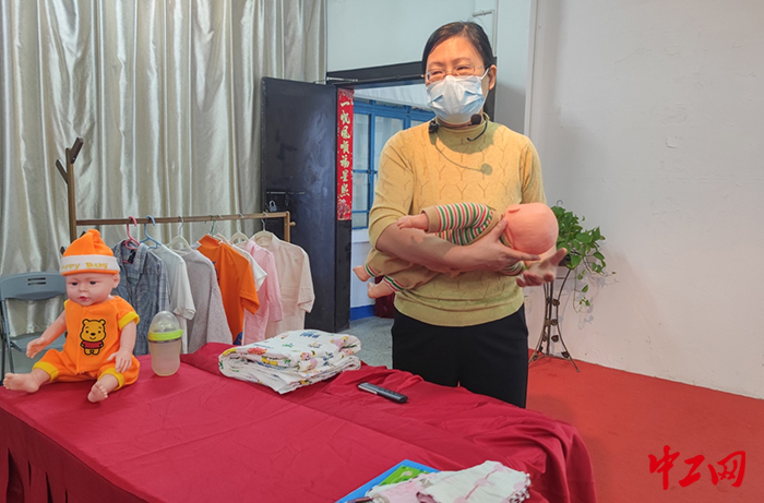 培训师陈丽彬正在为学员讲解抱婴儿的技巧。王子凡 摄