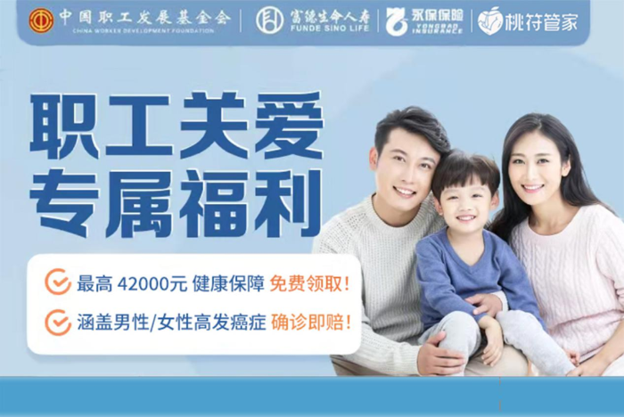 “职工关爱专属福利--家庭保险”,涵盖男性/女性高发癌症,最高42000元健康保障!为了自己和爱的人,来领取富德家庭关爱金吧!(适用山东、山西、黑龙江、安徽、江苏)