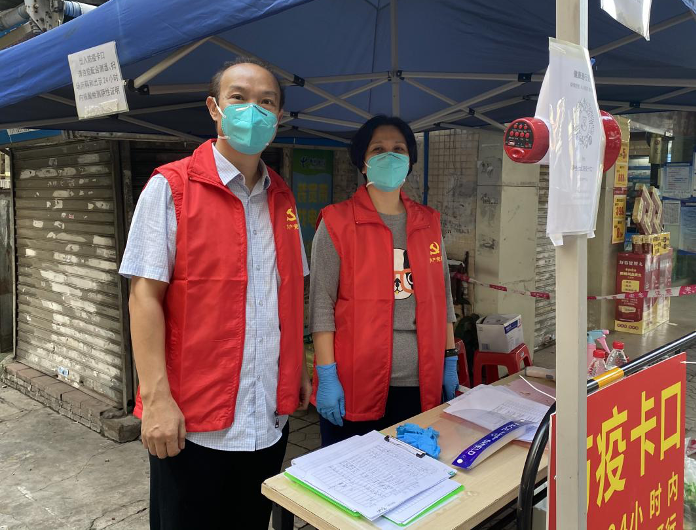 海珠区疫情形势严峻,省总工会二级巡视员刘国斌主动与新港街道办事处建立联系,发动省总居家办公干部下沉社区支援抗疫。11月8日,刘国斌承担祈乐社区片区巡查工作。