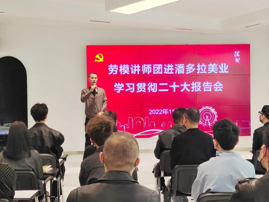 在上海潘多拉美发有限公司举办的首场劳模宣讲活动中,共50余名职工参加学习。梅陇镇人大副主席、镇总工会主席施佩玉为镇劳模宣讲三人小组成员,上海市劳动模范、市优秀党务工作者朱强颁发荣誉证书。