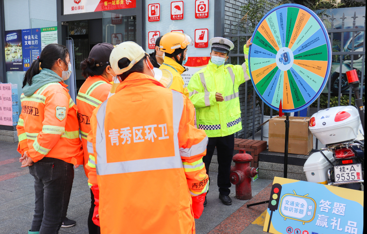 活动上,开展交通安全知识宣传、骑乘安全答题抽奖,用多样的形式倡导新就业形态人员安全文明出行,并提供现场法律宣传与咨询服务。随后,相关单位向南宁市交通干警、环卫工人、外卖骑手、快递员赠送御寒物资。