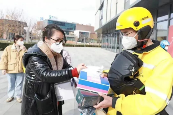 12月20日,无锡经开区总工会联合区党群部、区市场监管局给辖区内外卖骑手们送上300多份暖心礼包。“真的太及时了,我们现在正急需N95口罩和抗原检测试剂盒。”美团华庄站点负责人高兴地表示。