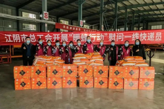12月22日,江阴市总工会向全市外卖配送员等新就业形态劳动者和环卫工等一线劳动者代表送去3400份“健康爱心包”,爱心包里有中医茶饮、医用外科口罩、水银温度计等防疫物资。梁溪区总工会暖心慰问饿了么、T3出行、丽华快餐等外卖配送员、网约车司机,共发放“爱心防疫包”560份。