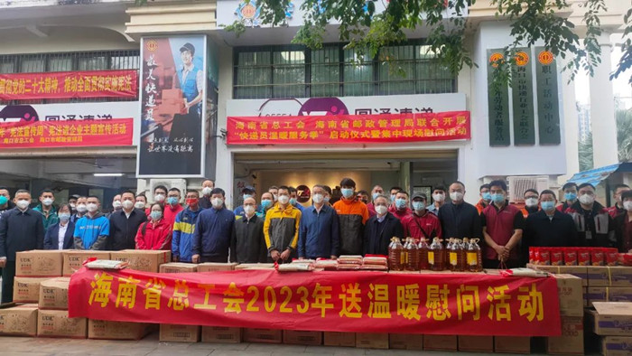 在省总工会、省邮政管理局指导推动下,海口市总工会于2021年12月批复同意成立海口市快递行业工会联合会,主要由圆通、顺丰、中通、申通、极兔、德邦、天天、迅捷易通、中外运敦豪9家快递企业工会组成,共有会员5000余人,为保护快递员群体合法权益工作提供组织保障。2022年,省总工会、省教科文卫邮电工会指导帮助海口圆通分公司结合行业特点开展海口市快递行业“会站家”一体化项目建设,打造户外劳动者的“歇脚地”“加油站”,把“会站家”建设成为服务群众的重要窗口和爱心驿站,为快递员、环卫工人等户外劳动群体提供一个“渴了能喝水、热了能乘凉、冷了能取暖、累了能休息”的暖心场所。
