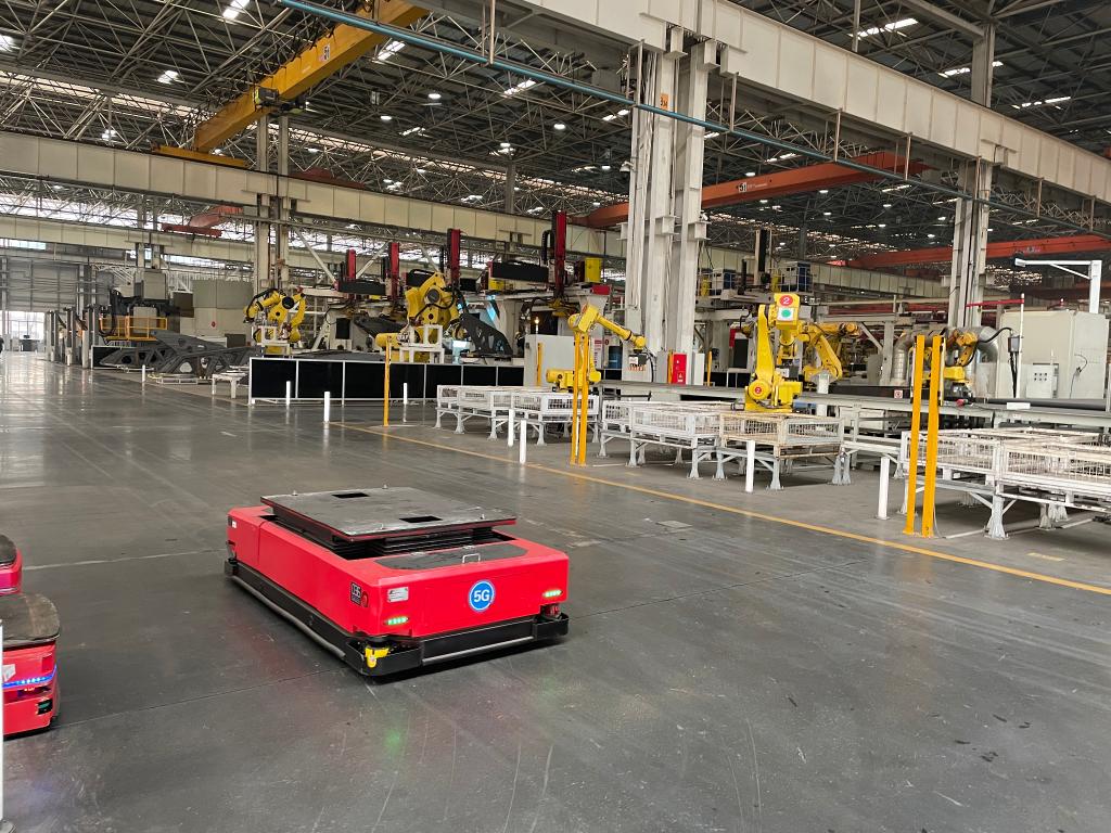 这是三一重工长沙园区的18号工厂里的AGV小车(智能搬运机器人)。新华社记者余春生 摄