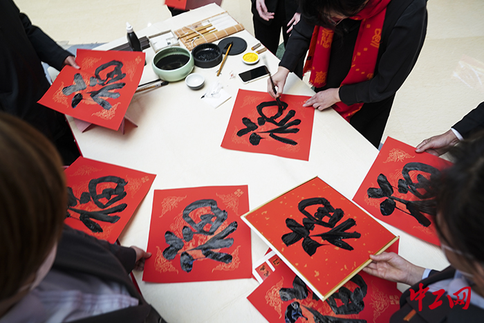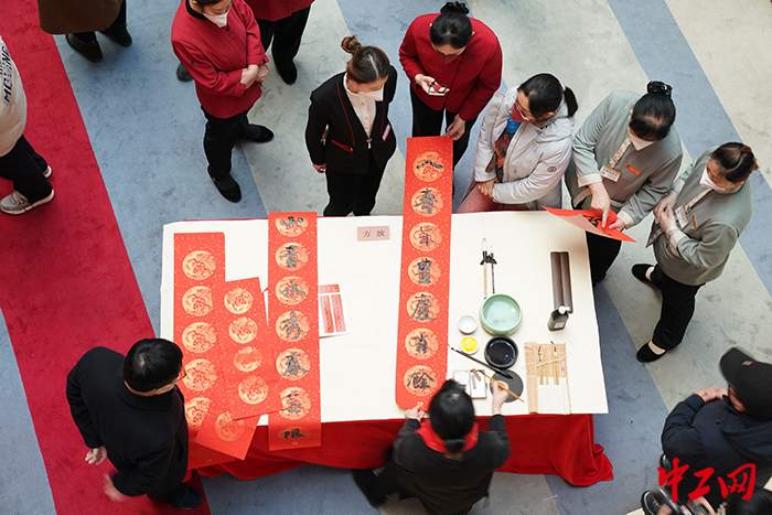 活动现场,书法家方放为职工书写“福”字、对联。中工网记者王鑫 摄