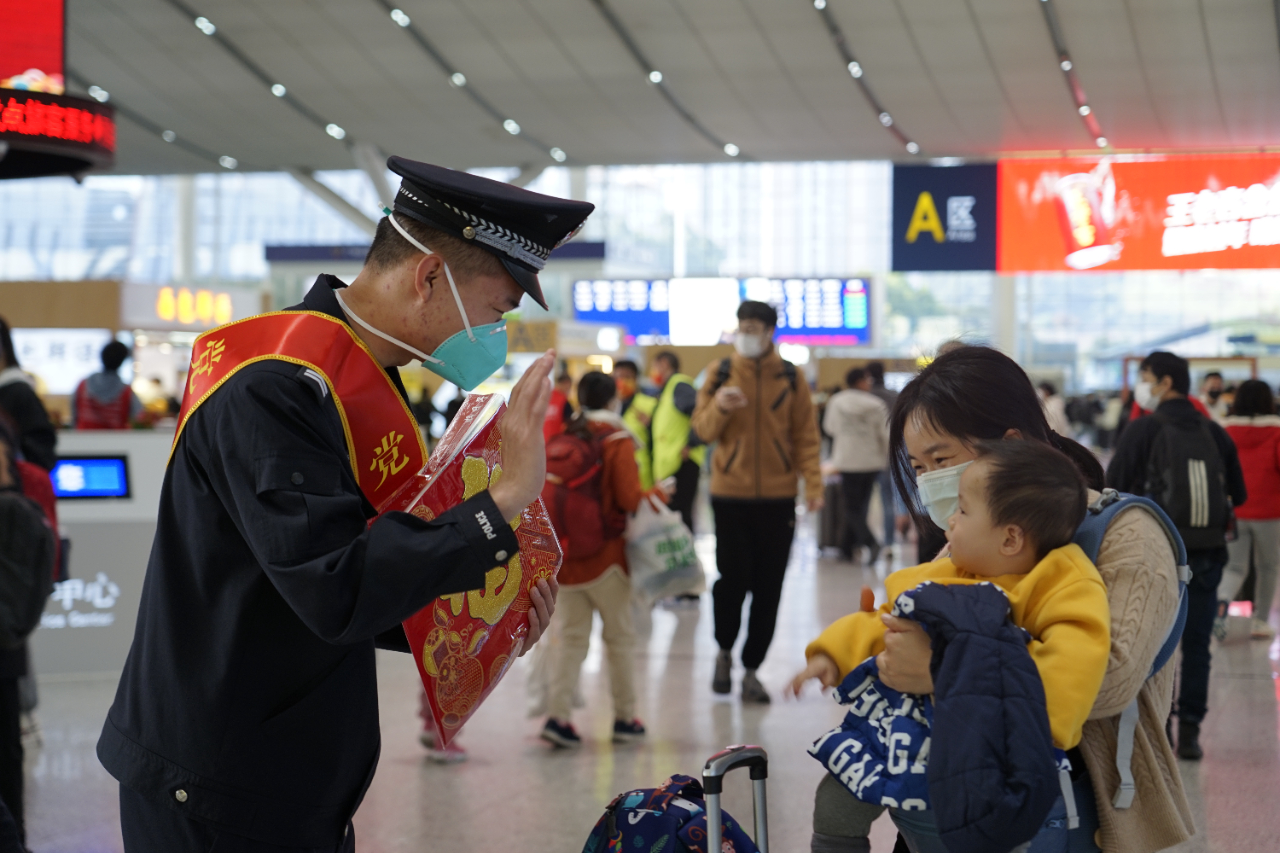 此外,深圳铁路公安处组织民警立足岗位,积极开展利民、便民等服务活动。深圳北站派出所联合车站客运部门举办“温馨春运,与爱同行”主题宣传活动,聚焦热点乘车小知识组织旅客进行有奖问答互动。广州东站派出所青年民警来到旅客群众中,为旅客群众答疑解惑,赠送春联、窗花等,让广大旅客感受到了“年”的氛围。深圳市福田站派出所民警用毛笔书写出一个个苍劲有力的“福”字,为旅客的归途送上一份份真挚的祝福。东莞市虎门站派出所联合地方开展“情满旅途,畅想交通”志愿服务活动,为旅客提供法律咨询、安全劝导、宣传提示等服务。