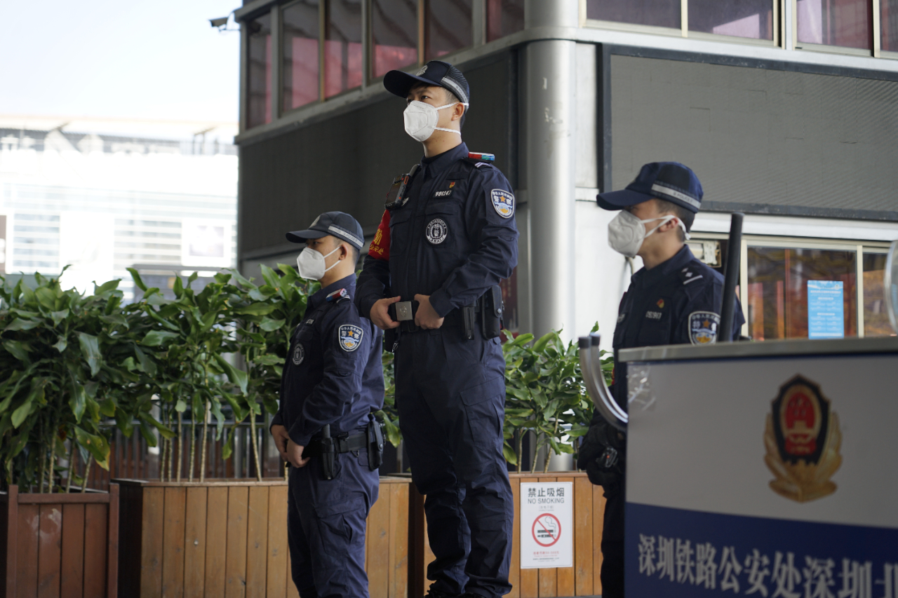 深圳铁路公安处各车站派出所密切与客运部门配合,及时掌握客流情况,加强进站口、安检口、广场岗亭、站台等重点部位的巡逻力量,切实提高见警率,协助做好旅客的疏导,维护良好秩序。为净化站车环境,深圳北站派出所成立“铁鹰”小分队,额外安排便衣力量充实在站场,严查管内盗抢骗犯罪案事件。深圳站派出所根据春运安保预案,以最小作战单元模拟了一场“旅客票务纠纷”警情应急处突演练,民警们反应迅速、动作规范、配合密切,取得了良好的效果。深圳乘警支队加强重点方向列车值乘警力,“护乘小分队”有针对性、持续性地进行巡查,加强对乘车旅客的法制宣传和行李检查,确保旅客列车安全有序。