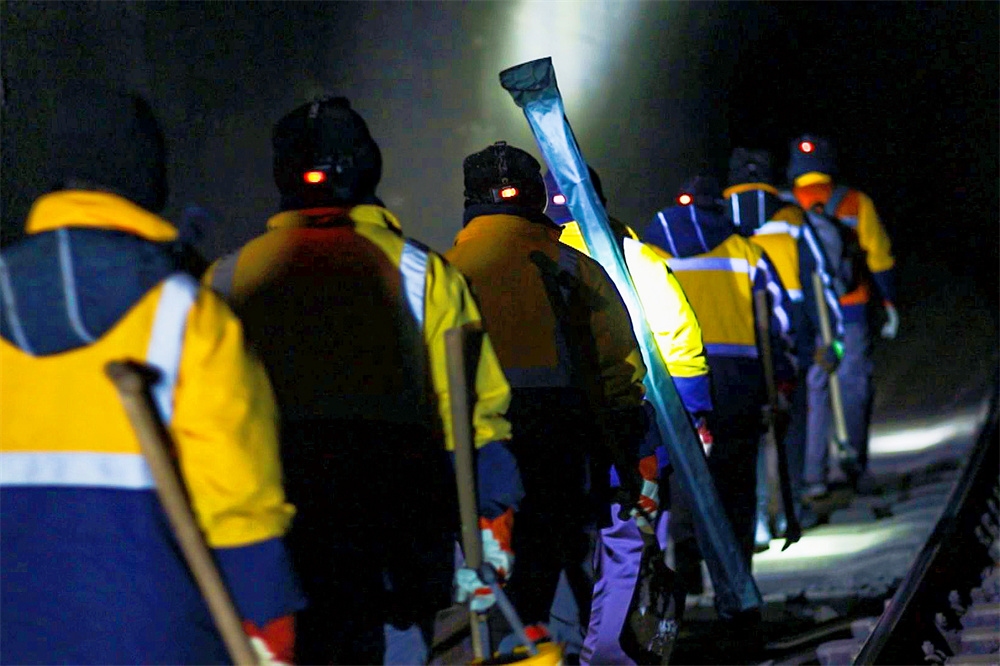 为保证作业进度,刘传双把队伍分成两组,从涵洞的两侧同步推进。越往里,除冰的难度越大,狭窄的空间里,镐头很难挥舞起来,根本使不上劲。大家只能趴在积冰上作业,虽然身着厚厚的棉服棉帽,但不一会就被冰上的寒气浸透了,溅起的碎冰钻进衣服里时不时还给人一个透心凉。由于需要钻到涵洞里作业,有些工人的孩子说爸爸和工友叔叔们像动画片里打洞的鼹鼠,所以“鼹鼠兄弟”的外号也就流传开来。