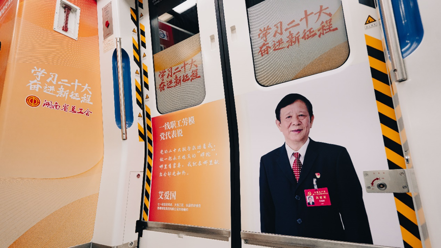 “加快建设国家战略人才力量,努力培养造就更多大师、战略科学家、一流科技领军人才和创新团队、青年科技人才、卓越工程师、大国工匠、高技能人才”“使人人都有通过勤奋劳动实现自身发展的机会”“深化工会、共青团、妇联等群团组织改革和建设,有效发挥桥梁纽带作用”……走进地铁车厢内,海报上一句句党的二十大报告中关于工人阶级和工会工作的相关论述,铿锵有力,鼓舞人心。