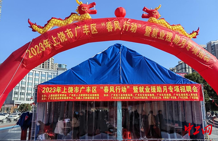 “光阴之城美如画,就近就业惠家乡。”“就业不用去远方,家乡就是好地方。”……2月19日,在上饶市广丰区洋口镇木雕城招聘会现场,一条条温馨的招聘标语让前来应聘的求职者感到格外暖心,这是广丰区总工会、区人社局、上饶高新区等单位在月兔广场主会场和18个乡镇分会场同步进行“春风行动”大型招聘会活动中的一个缩影。