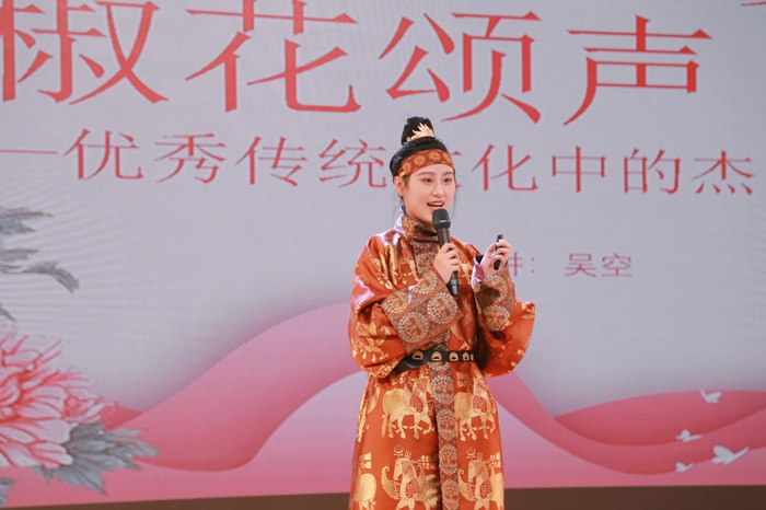 活动当天,中铁八局女职工身着中华传统服饰进行了走秀表演。聆听成都本土女性历史专家分享了文成公主、班昭、穆桂英三位古代杰出女性的事迹,并用生动、形象的语言向大家讲授了中华传统文化知识。来自中铁八局的两名 90后“铁娘子”——武妍和余丹结合自己长期扎根在施工一线的经历进行了先进事迹宣讲。贵州省五一劳动奖章获得者崔丽娟向全体女职工发出倡议,号召广大女职工用实际行动在企业和谐发展的主旋律中,谱写半边天的壮丽篇章。