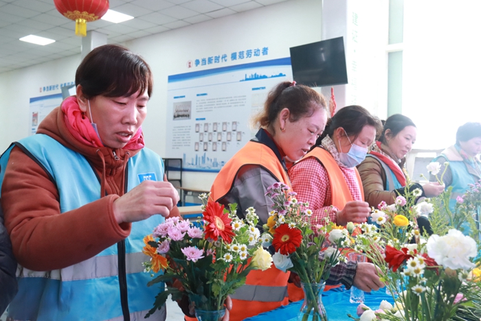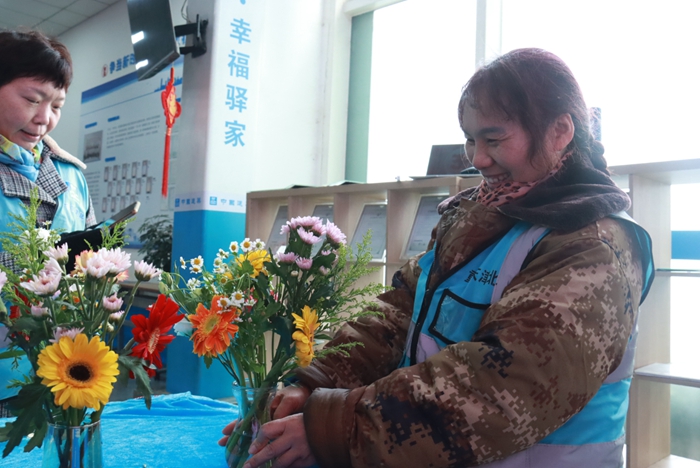 卸下往日的压力与重担,她们展现出生活中细腻柔情的一面。 “花香扑鼻,成就感满满,谢谢对我们女工友的关心!”一位女工友笑着说道。