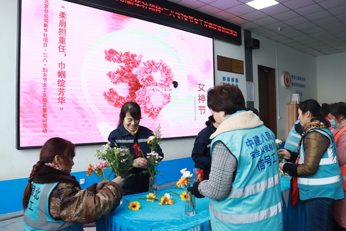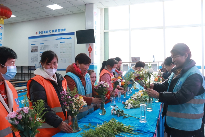 3月7日,中建八局国家金融信息大厦项目“幸福驿家”中,一片欢声笑语。20多名女工友们正围坐在一起,开展 “柔肩担重任 巾帼绽芳华”主题DIY插花活动,共同迎接即将到来的三八国际劳动妇女节。