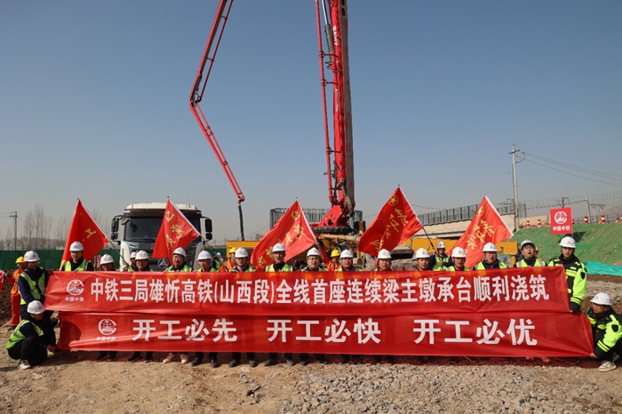 “我们全力抢抓施工黄金季,迅速掀起春季劳动竞赛热潮,工地建设者争分夺秒,挑灯夜战,克服承台淤泥地质、作业面狭窄等不利因素影响,灵活调配资源,优化施工工序,已取得了十三项全线第一。”中铁三局雄忻高铁站前4标项目经理高洪奎介绍说。